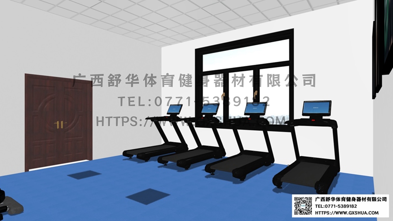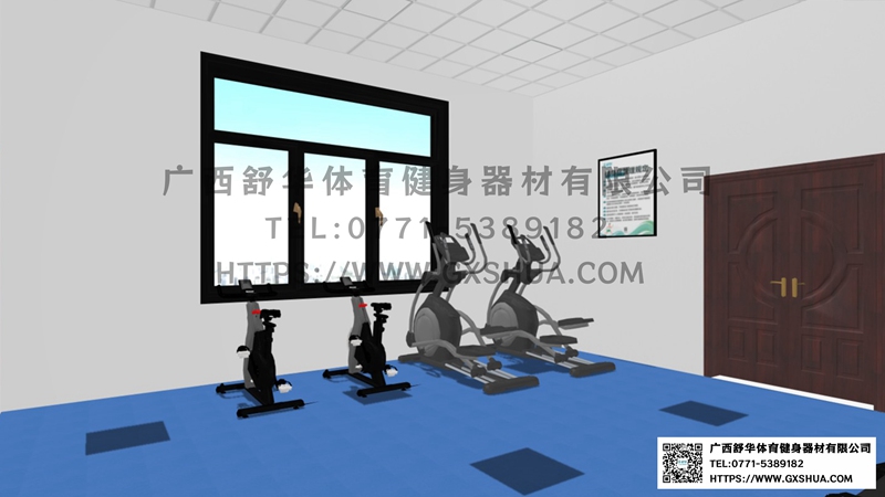 场地尺寸:6m*6.65m(有氧器材区)+4.85*6.65(力量训练器材区)