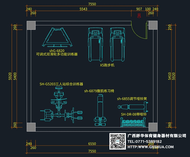 在现代企事业单位的发展蓝图中,员工的健康是不容忽视的重要基石。健康的员工队伍不仅意味着更高的工作效率,更代表着企业可持续发展的动力源泉。鉴于此,打造一个41m² 的小型健身房成为众多企事业单位提升员工福利、激发团队活力的智慧之选。本方案将为您详细呈现如何在有限空间内,配置出一个功能齐全、高效实用的健身房,让每一位员工都能在繁忙工作之余,开启活力满满的健身之旅。
