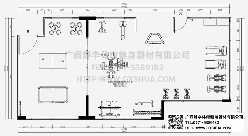 此方案要求面积小于177m²,适用于企事业单位、酒店会所、楼盘社区、工作室、学校等健身场所,能满20-30人同时健身使用。(方案根据场地空间大小、预算、产品需求等进行配置仅为启发性参考)