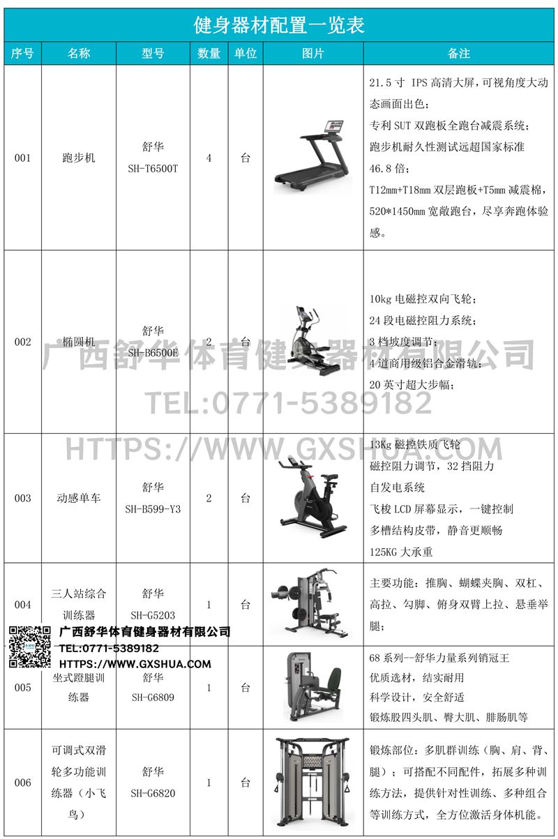 1.开元X5 Pro跑步机SH-T6500T*4台-经典时尚造型配色,简约Z字车架造型,融合各种家居风格,彰显奢华运动质感;21.5英寸高清触控屏-传承动感美学,成就时代典型之作全新升级V3.0系统,支持系统在线升级,极大提升用户交互体验;专利减震跑台-采用SUT双层跑板、全跑台减震系统,且该减震科技获得国家专利,有效减少关节冲击,52cm宽跑台搭配精抽雏形滚筒,稳固不位移;F级马达动力强劲-5.0HP峰值马达,2.5HP持续输出,0~15%坡度调节,最高18km/h时速,胜任不同类型训练;