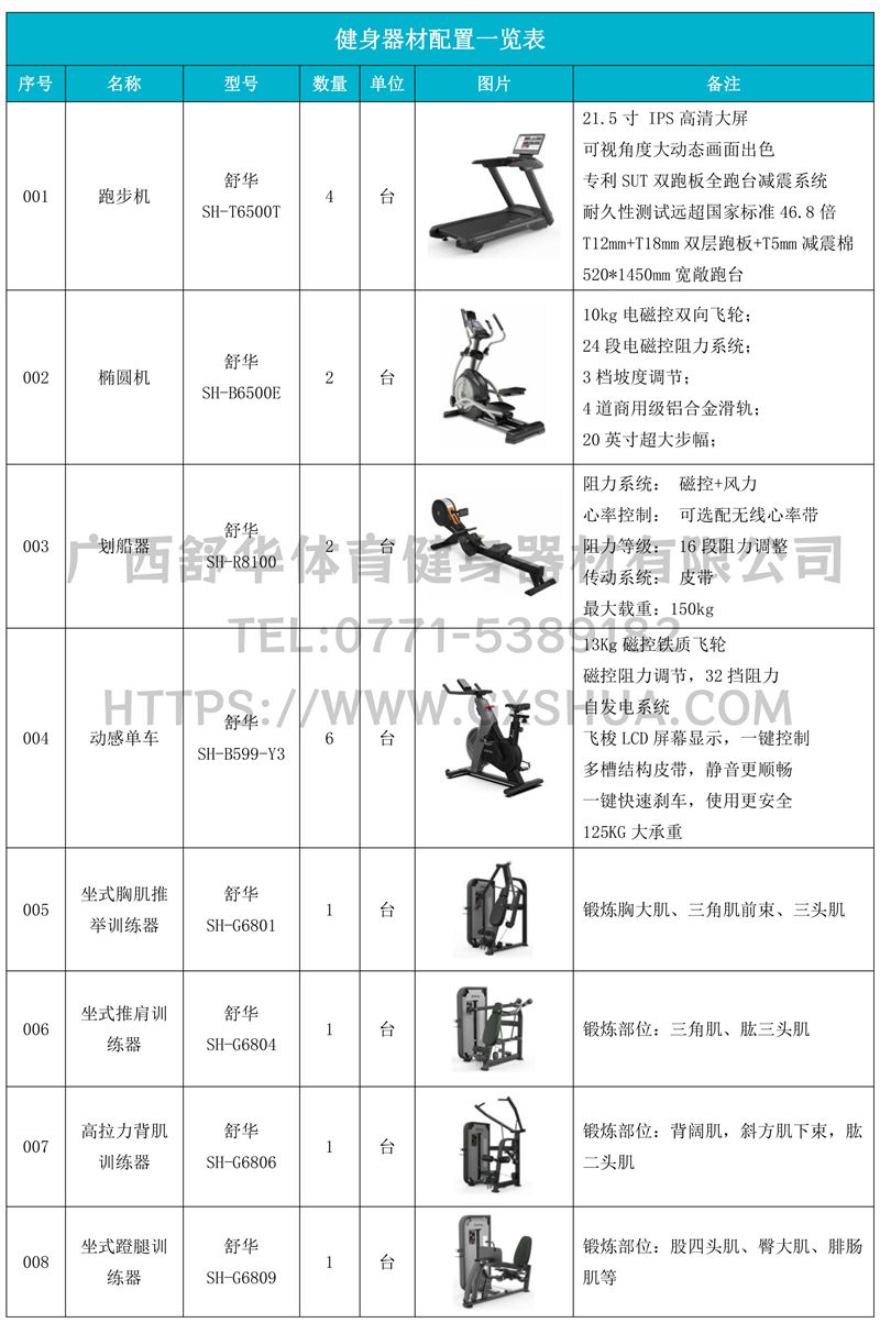 1.开元X5 Pro跑步机SH-T6500T*4台-采用高性能电机,提供稳定动力,支持长时间高强度运行,适合长时间有氧训练,跑台宽敞,提供舒适跑步空间,减少运动中的束缚感,适合不同体型用户。配备先进减震系统,有效缓解跑步对关节的冲击,降低运动损伤风险,内置智能控制系统,支持多种预设程序和个性化训练计划,用户可根据需求调整速度和坡度,满足多样化训练。